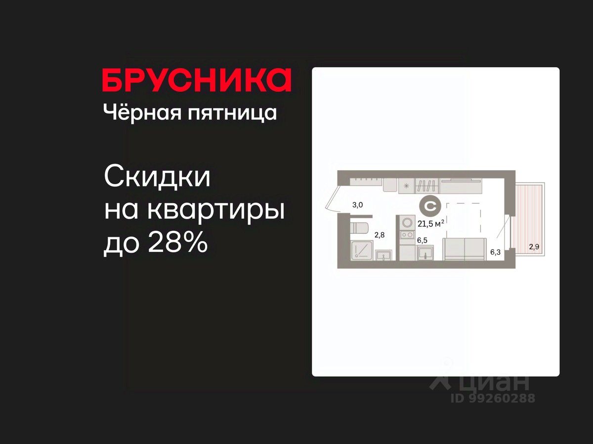 Студия в квартале "Депо". Особенности планировки: предчистовая отделка, балкон.
