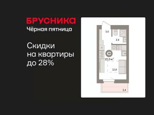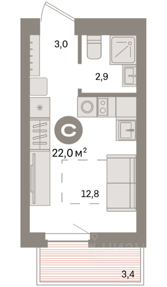 Студия в квартале "Депо". Особенности планировки: предчистовая отделка, балкон.