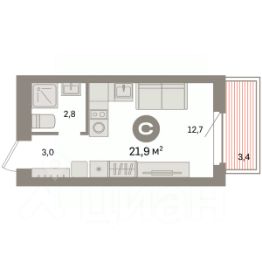 Студия в квартале "Депо". Особенности планировки: балкон, предчистовая отделка.