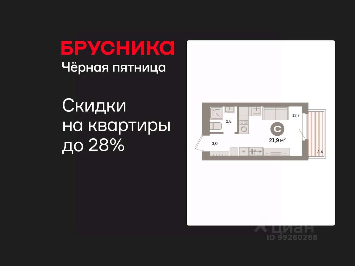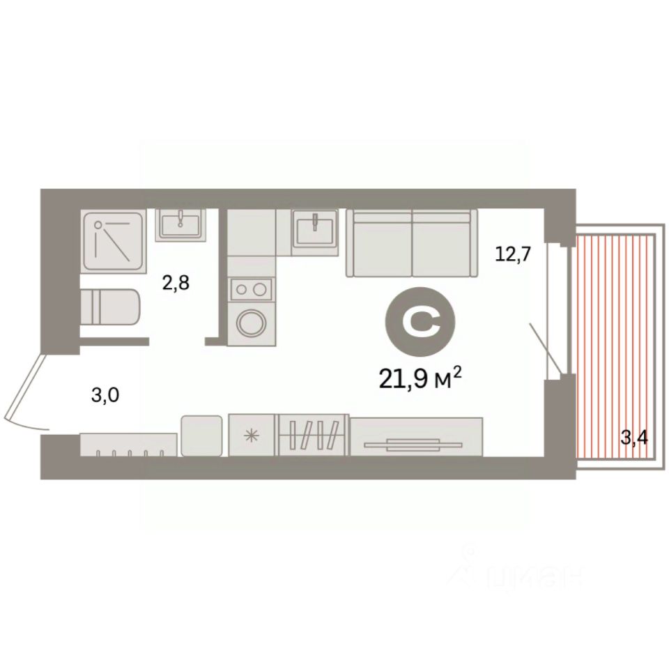 Студия в квартале "Депо". Особенности планировки: предчистовая отделка, балкон.