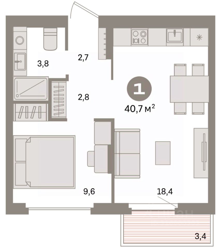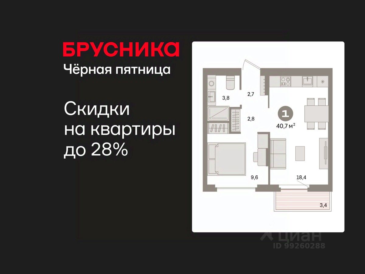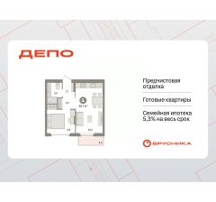 Квартира с кухней-гостиной и одной спальней в квартале "Депо". Особенности планировки: предчистовая отделка, балкон.