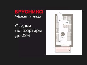 Студия в квартале "Депо". Особенности планировки: предчистовая отделка, балкон.