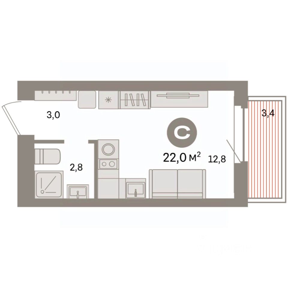 Студия в квартале "Депо". Особенности планировки: предчистовая отделка, балкон.