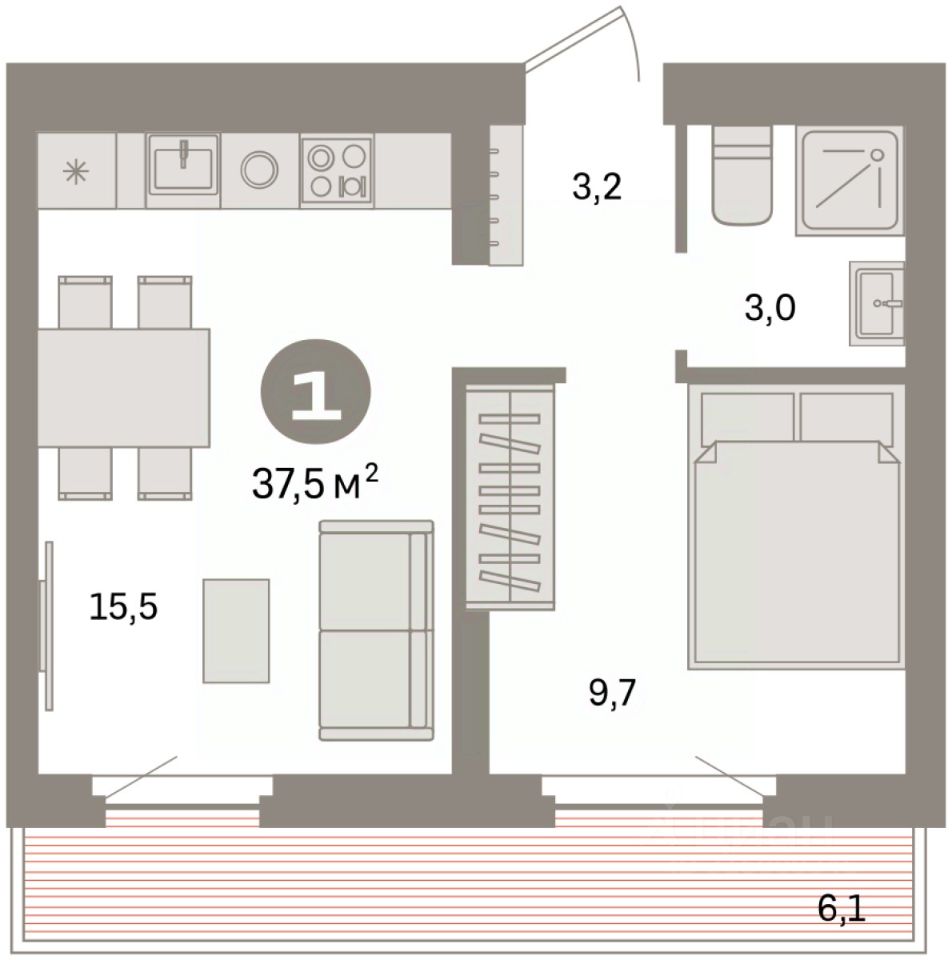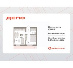 Квартира с кухней-гостиной и одной спальней в квартале "Депо". Особенности планировки: предчистовая отделка, терраса на крыше.