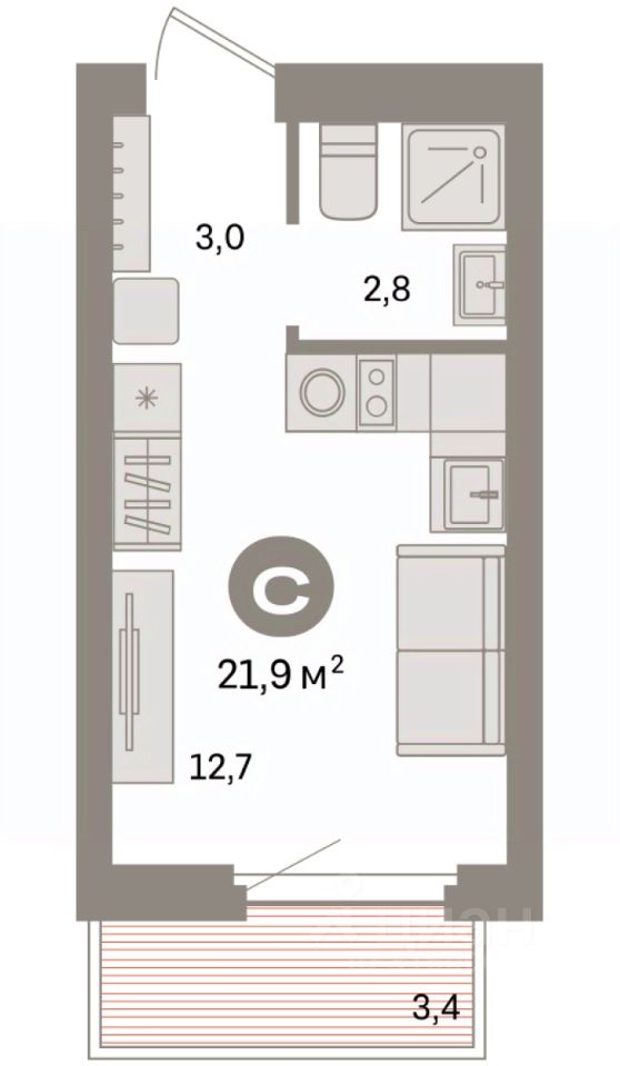 Студия в квартале "Депо". Особенности планировки: балкон, предчистовая отделка.
