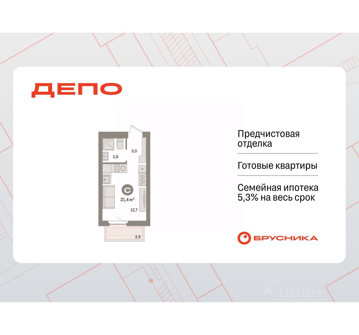 Студия в квартале "Депо". Особенности планировки: балкон, предчистовая отделка.
