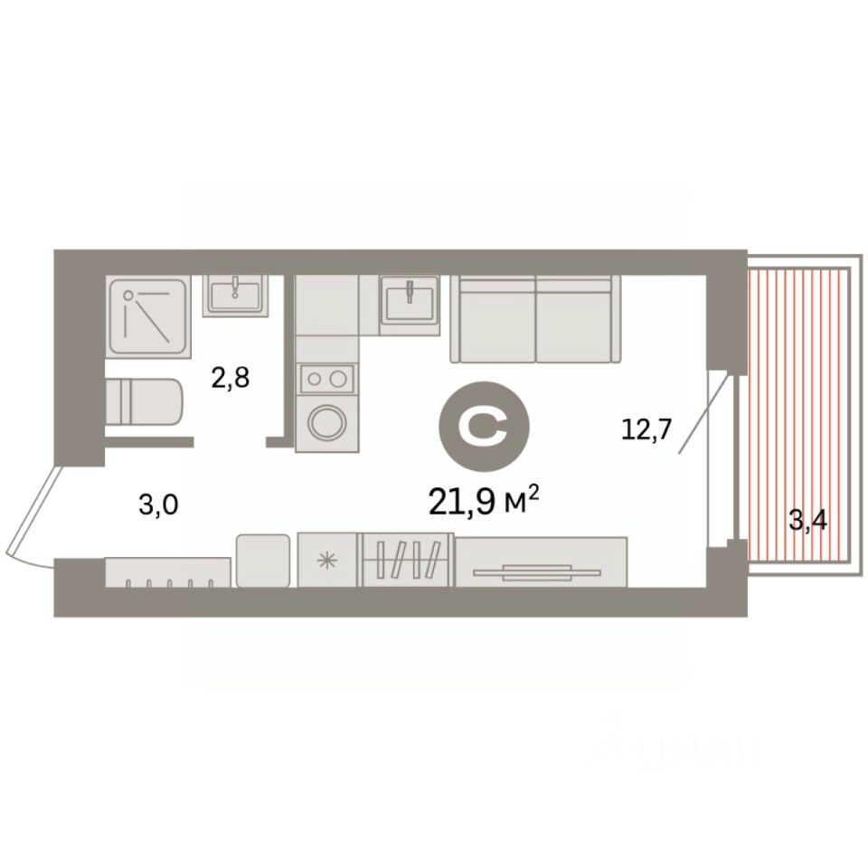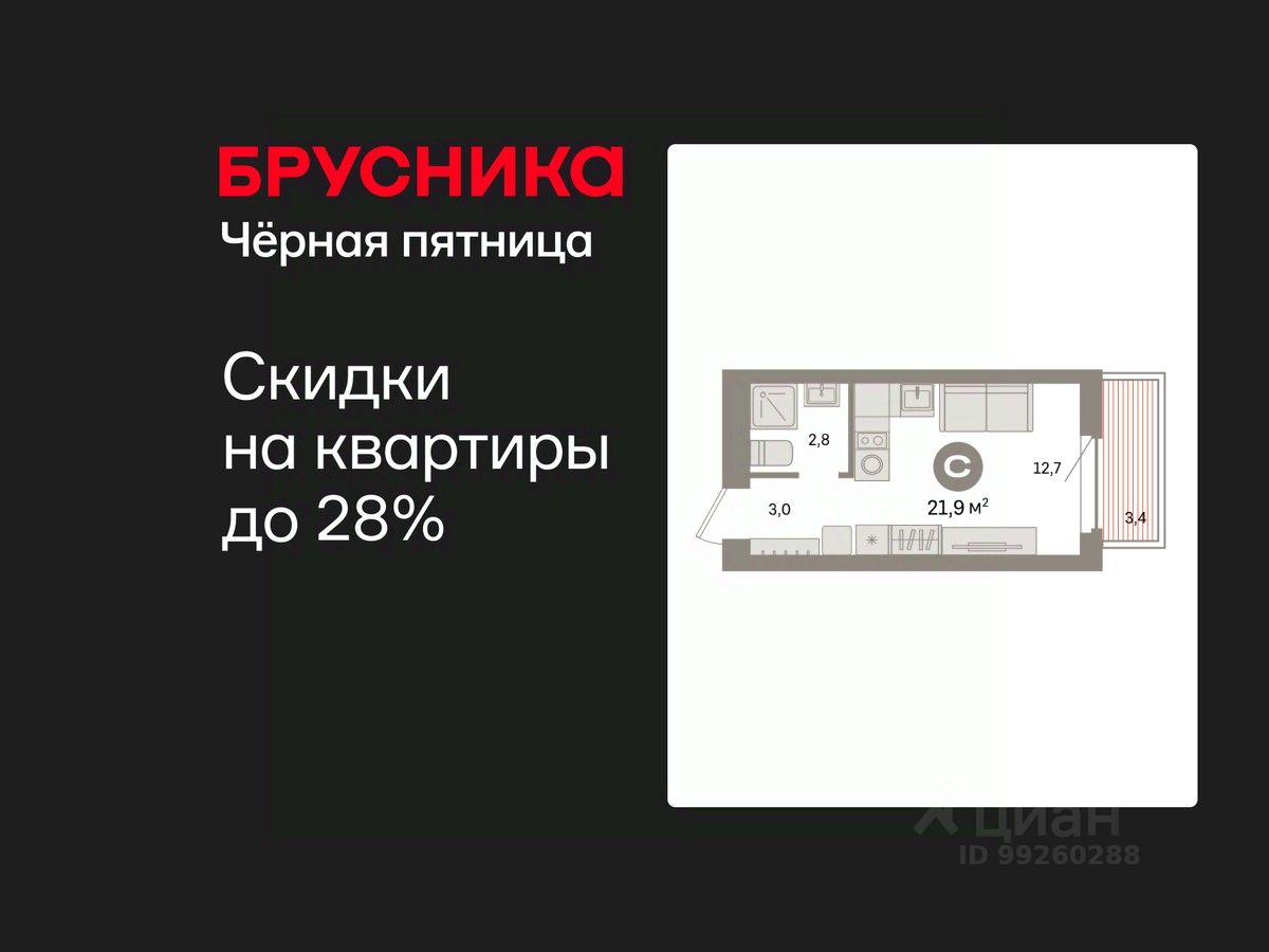 Студия в квартале "Депо". Особенности планировки: предчистовая отделка, балкон.
