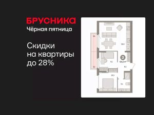Квартира с кухней-гостиной и двумя спальнями в квартале "Депо". Особенности планировки: вид во двор, разнесённые спальни, предчистовая отделка, балкон.