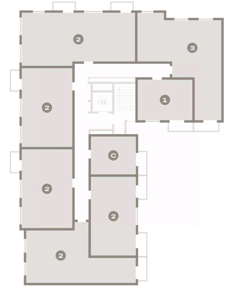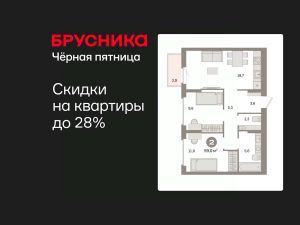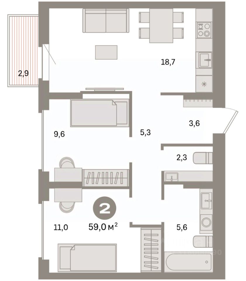 Квартира с кухней-гостиной и двумя спальнями в квартале "Депо". Особенности планировки: второй санузел, разнесённые спальни, предчистовая отделка, балкон.