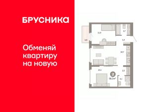 Квартира с кухней-гостиной и двумя спальнями в квартале "Депо". Особенности планировки: балкон, предчистовая отделка, разнесённые спальни.