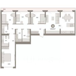 Квартира с кухней-гостиной и четырьмя спальнями в квартале "Депо". Особенности планировки: вид во двор, гардеробная, ипотека 10%, окна на две стороны, предчистовая отделка, разнесённые спальни, терраса на крыше.