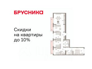 Квартира с кухней-гостиной и четырьмя спальнями в квартале "Депо". Особенности планировки: балкон, окна на две стороны, предчистовая отделка, рабочий кабинет, разнесённые спальни.