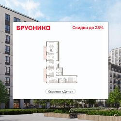 Квартира с кухней-гостиной и четырьмя спальнями в квартале "Депо". Особенности планировки: балкон, вид во двор, гардеробная, окна на две стороны, постирочная, предчистовая отделка, разнесённые спальни.