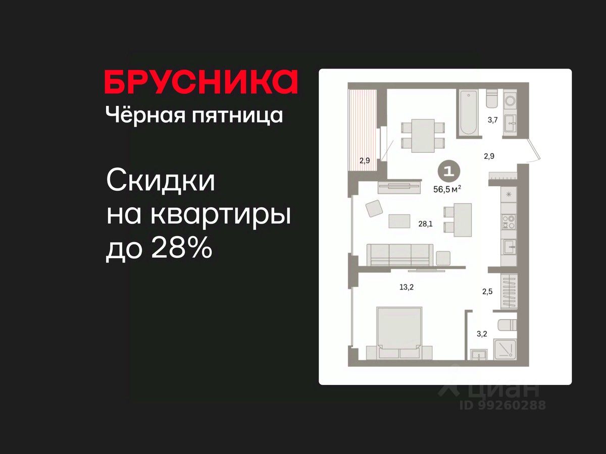 Квартира с кухней-гостиной и одной спальней в квартале "Депо". Особенности планировки: второй санузел, гардеробная, лоджия, предчистовая отделка, мастер-спальня.