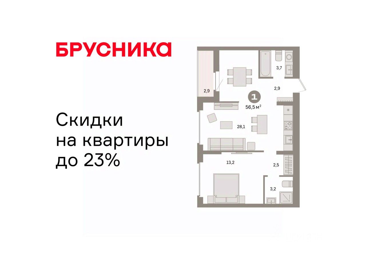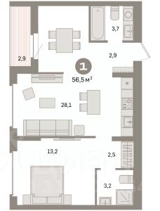 Квартира с кухней-гостиной и одной спальней в квартале "Депо". Особенности планировки: второй санузел, гардеробная, ипотека 10%, лоджия, мастер-спальня, предчистовая отделка.