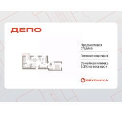 Квартира с кухней-гостиной и двумя спальнями в квартале "Депо". Особенности планировки: второй санузел, гардеробная, разнесённые спальни, предчистовая отделка, мастер-спальня, балкон.