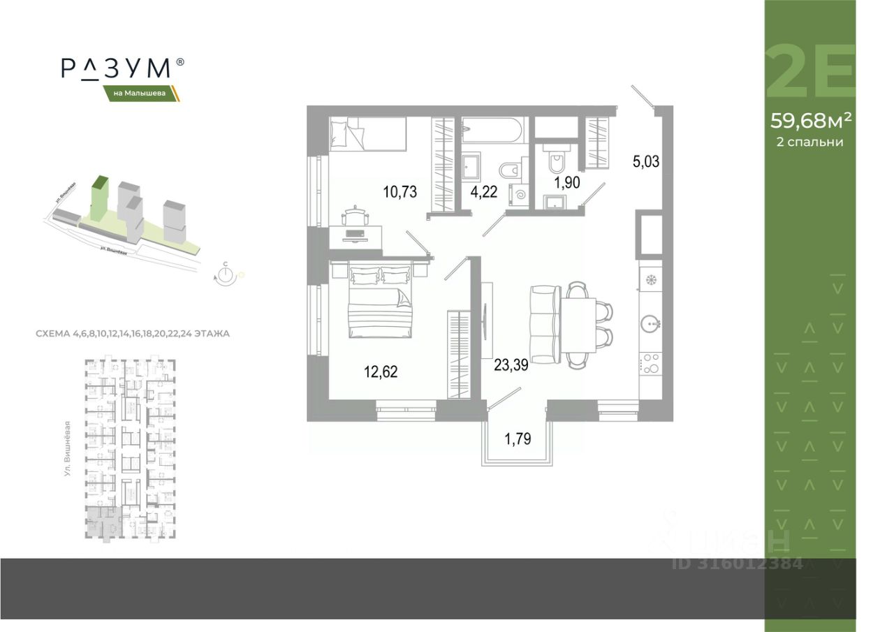 "РАЗУМ на Малышева" — новый проект от федерального девелопера с 12-летним опытом. Квартал расположен в самом сердце Екатеринбурга в Кировском районе. В шаговой доступности: 8 детских садов; 7 школ; прогулочные зоны и парки; магазины; учреждения профессионального образования. "РАЗУМ на Малышева" — это четыре 31-этажных башен на улице Малышева. Дополнительная приватность, безопасность и тишина создаётся за счёт возвышения домов на стилобате. Балконы на фасадах открывают виды на город и во двор, а угловые террасы открывают ещё больше простора и потрясающих видов. Жители квартала "РАЗУМ на Малышева" наслаждаются зелёными зонами круглый год. 60% территории занимает озеленение с деревьями, кустарниками и многолетниками. Здесь прогулки, отдых, работа и встречи с друзьями проходят в уютных зонах с перголами, шезлонгами и гамаками. "РАЗУМ на Малышева" — это: развитая инфраструктура; эргономичные и яркие архитектурные решения; дополнительный уровень спокойствия за счет возвышения на стилобате; во дворе высажены деревья и кустарники с учетом 4 сезонов; многоуровневое освещение; благоустройство; высокий уровень безопасности; стильные гранд-лобби и ресепшн; особые панорамные виды; собственная управляющая компания; собственный детский сад на 150 мест; четырёхэтажный паркинг; соседский центр место развития добрососедства; коммерческие помещения. Эргономичность и удобство в каждом квадратном метре — основа планировочных решений в квартале "РАЗУМ на Малышева". Для каждого сценария жизни найдется планировка: представлены десятки вариантов от 29,92 м² до 84,88 м². Квартиры с террасами размещены на верхних этажах домов. Терраса — это дополнительное пространство для слияния с природой.