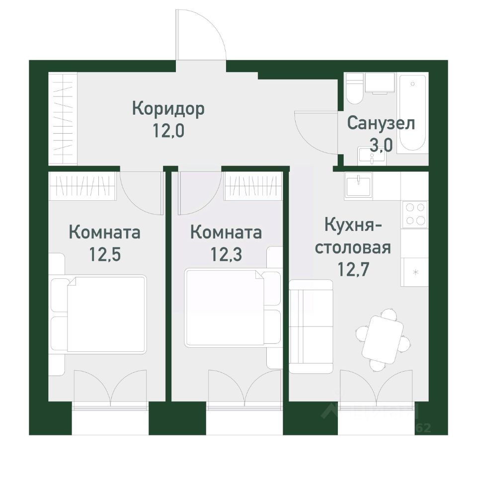 Общая площадь52,43 м²