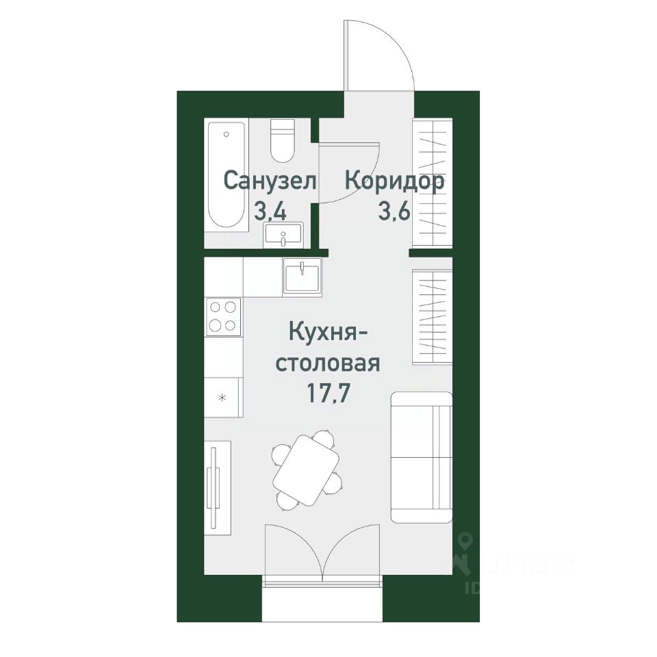 Общая площадь23,35 м²