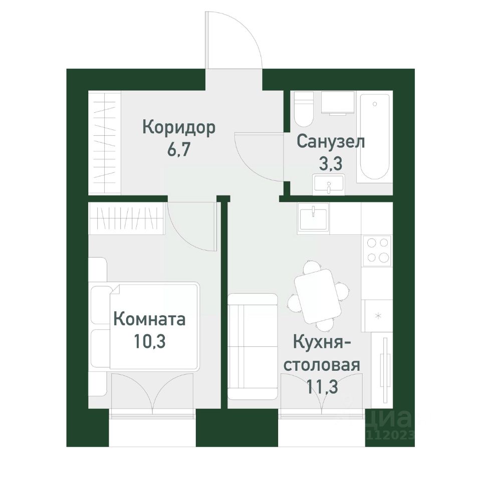 Общая площадь33,03 м²