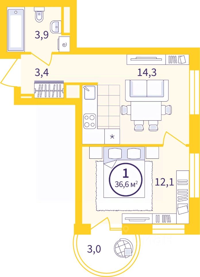 Продается 1-комн. квартира от застройщика с предчистовой отделкой в ЖК "Астон.Движение" на 6 этаже. Общая площадь: 34.53 кв.м., жилая: 12.1 кв.м., площадь просторной кухни-столовой: 14.3 кв.м. Квартира угловая, очень светлая, естественная вентиляция при открытии окон. В квартире один балкон, один совмещенный санузел. Высота потолков 2.7 м.