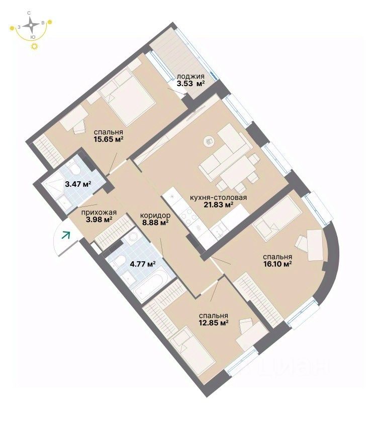 Квартира 3 в подъезде 1.