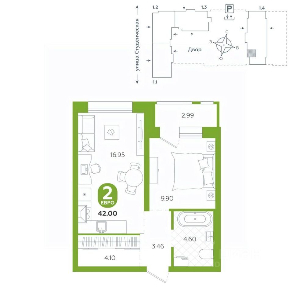 Предусмотрен подземный паркинг и кладовые. Срок сдачи 3 квартал 2026 г.