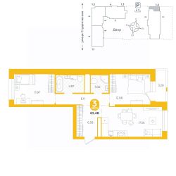 Квартира разработана с акцентом на удобство и практичность. Спальня создает атмосферу для спокойного отдыха, а ванная комната оснащена всеми необходимыми удобствами. Благодаря большим окнам все помещения хорошо освещены и идеально подходят для расстановки мебели. Планировка кухни позволяет эффективно зонировать пространство.