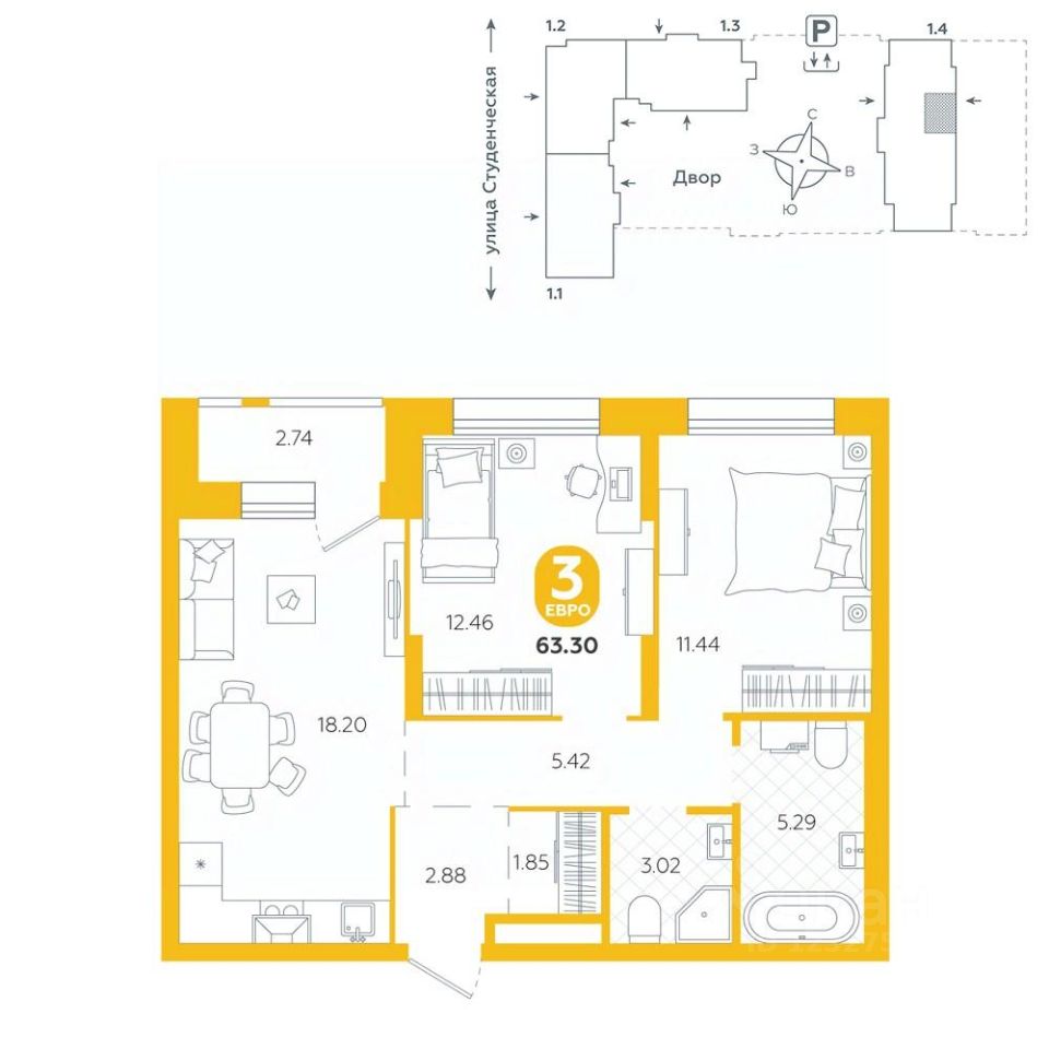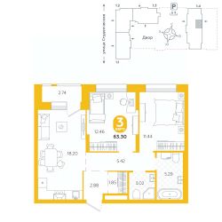 Предусмотрен подземный паркинг и кладовые. Срок сдачи 3 квартал 2026 г.