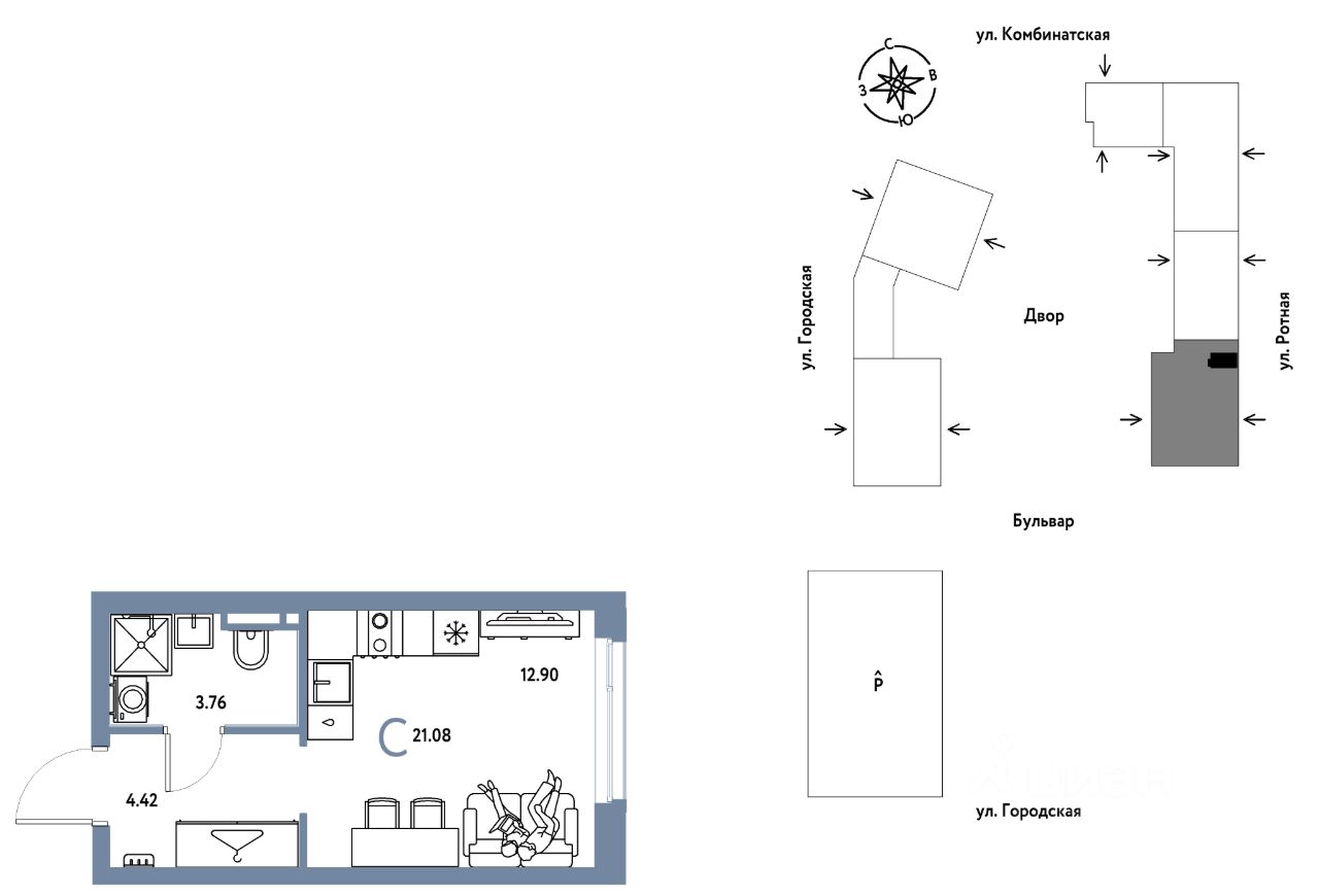 Продаётся студия в строящемся доме (Дом 1), срок сдачи: II-кв. 2027, общей площадью 21.08 кв.м., на 12 этаже. Новый жилой комплекс "Уральский сад" от застройщика "ГК Страна Девелопмент" расположен по адресу: г. Екатеринбург, посёлок Совхозный, Комбинатская улица.