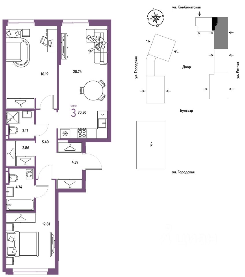 Продаётся 3-комнатная квартира в строящемся доме (Дом 1), срок сдачи: II-кв. 2027, общей площадью 70.5 кв.м., на 6 этаже. Новый жилой комплекс "Уральский сад" от застройщика "ГК Страна Девелопмент" расположен по адресу: г. Екатеринбург, посёлок Совхозный, Комбинатская улица.