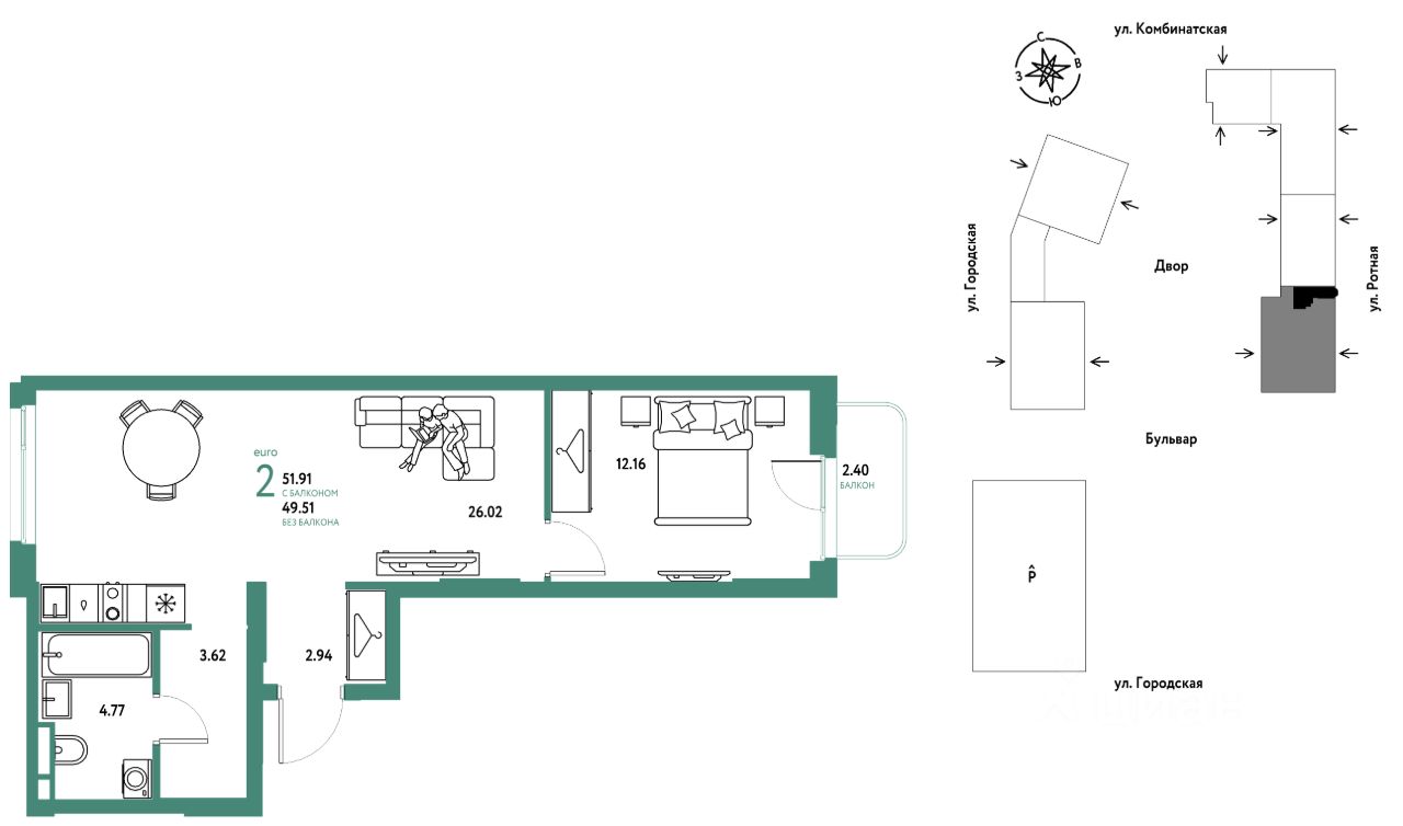 Продаётся 2-комнатная квартира в строящемся доме (Дом 1), срок сдачи: II-кв. 2027, общей площадью 51.91 кв.м., на 5 этаже. Новый жилой комплекс "Уральский сад" от застройщика "ГК Страна Девелопмент" расположен по адресу: г. Екатеринбург, посёлок Совхозный, Комбинатская улица.