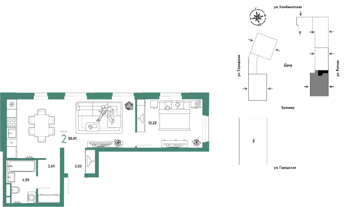 Продаётся 2-комнатная квартира в строящемся доме (Дом 1), срок сдачи: II-кв. 2027, общей площадью 50.01 кв.м., на 23 этаже. Новый жилой комплекс "Уральский сад" от застройщика "ГК Страна Девелопмент" расположен по адресу: г. Екатеринбург, посёлок Совхозный, Комбинатская улица.