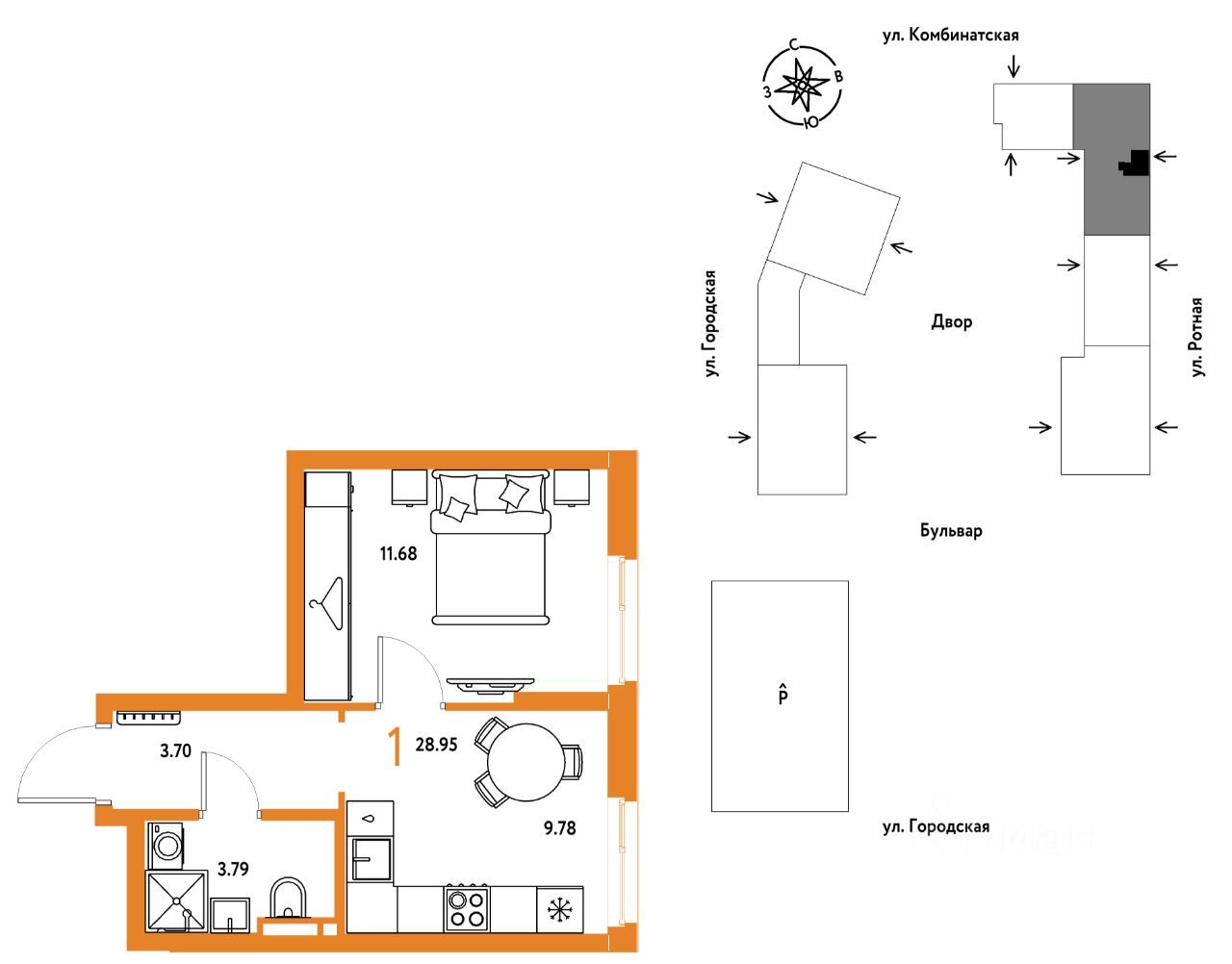 Продаётся 1-комнатная квартира в строящемся доме (Дом 1), срок сдачи: II-кв. 2027, общей площадью 28.95 кв.м., на 7 этаже. Новый жилой комплекс "Уральский сад" от застройщика "ГК Страна Девелопмент" расположен по адресу: г. Екатеринбург, посёлок Совхозный, Комбинатская улица.
