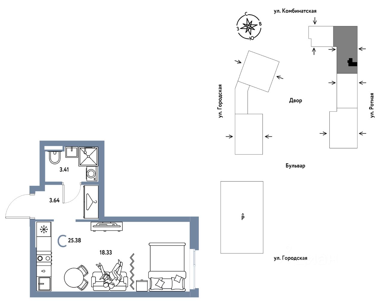 Продаётся студия в строящемся доме (Дом 1), срок сдачи: II-кв. 2027, общей площадью 25.38 кв.м., на 9 этаже. Новый жилой комплекс "Уральский сад" от застройщика "ГК Страна Девелопмент" расположен по адресу: г. Екатеринбург, посёлок Совхозный, Комбинатская улица.