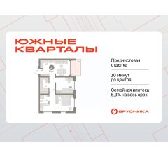 Квартира с кухней-гостиной и двумя спальнями в Южных кварталах. Особенности планировки: предчистовая отделка, мастер-спальня, балкон.