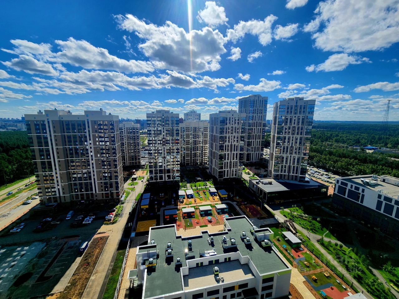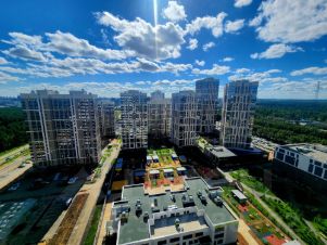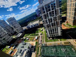 Солнечная сторона с видом во двор на детский сад и фитнес-центр.