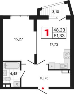 Продаётся квартира в Квартал-парк "Каменные палатки". 1-комнатная квартира, 50,56 м², 406, Очередь 4, секция 16. Стоимость указана с учетом чистовой отделки.