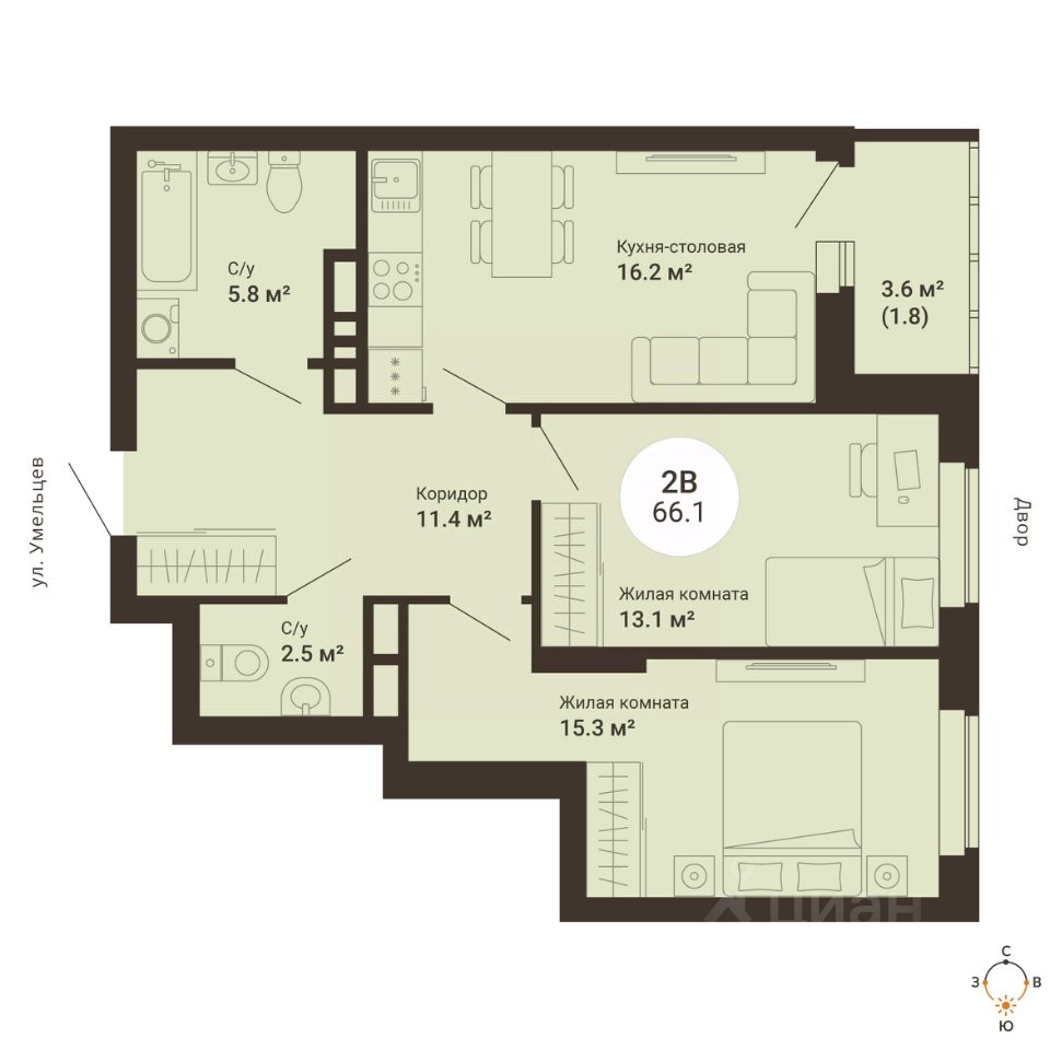 Общая площадь66,1 м²