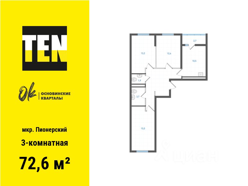 Общая площадь72,6 м²