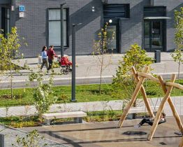 Проект включает шесть домов и многоуровневый паркинг. На первых этажах открываются кафе, магазины и полезные сервисы. А в уютных дворах-парках есть детские и спортивные площадки.