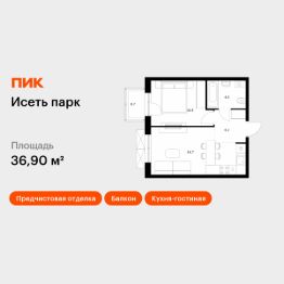 Продаётся 1-комн. квартира площадью 36,9 кв.м на 13 этаже 24 этажного дома (Корпус 5, Секция 1) проекта ПИК Исеть парк. Светлый просторный подъезд на уровне земли, функциональная планировка, большие окна, предчистовая отделка.