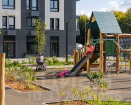 Проект включает шесть домов и многоуровневый паркинг. На первых этажах открываются кафе, магазины и полезные сервисы. А в уютных дворах-парках есть детские и спортивные площадки.