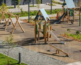 Проект включает шесть домов и многоуровневый паркинг. На первых этажах открываются кафе, магазины и полезные сервисы. А в уютных дворах-парках есть детские и спортивные площадки.