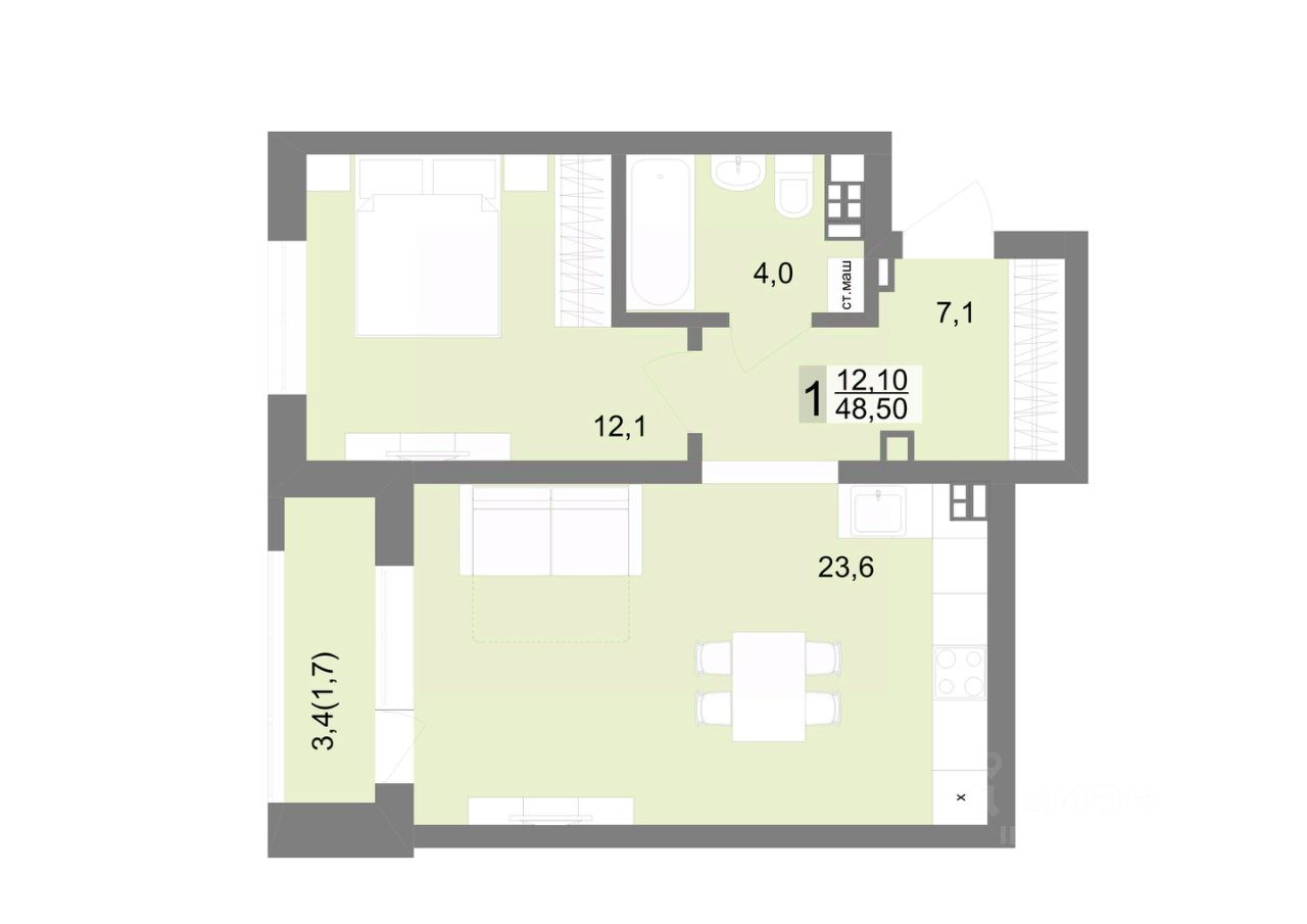 Продаётся 1-комнатная квартира в строящемся доме (Дом 1 секции 1-5), срок сдачи: II-кв. 2026, общей площадью 48.5 кв.м., на 10 этаже. Дом комфорт-класса на песчаном берегу Верх-Исетского пруда.