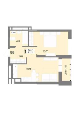 Общая площадь41,1 м²