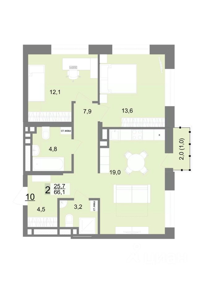 Общая площадь66,1 м²