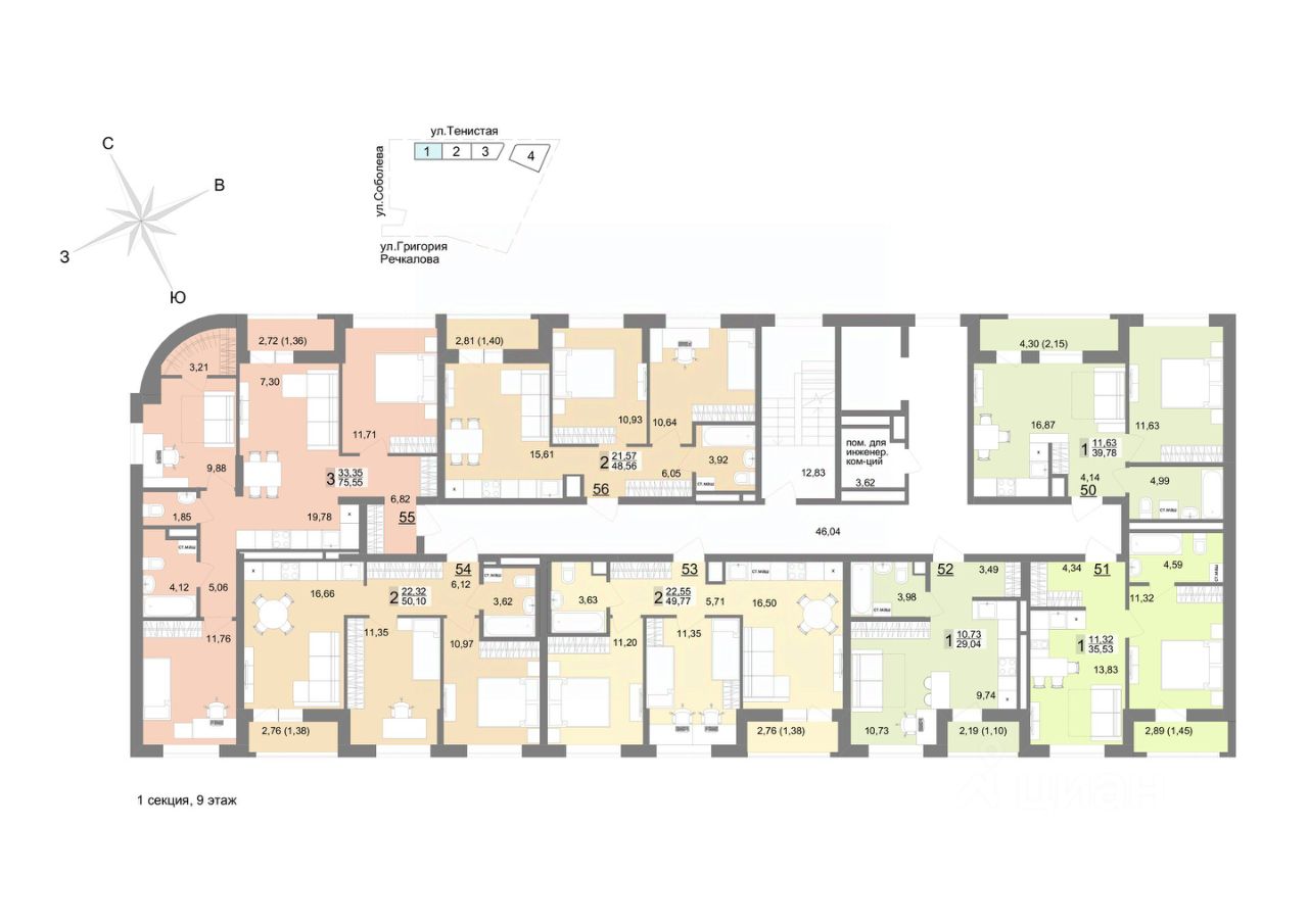 Семейный квартал "На Тенистой" будет состоять из 7 домов переменной этажности и паркинга. 1-я и 2-я очереди уже построены, сейчас активно возводится 3-я очередь и готовится к старту 4-ая очередь квартала.