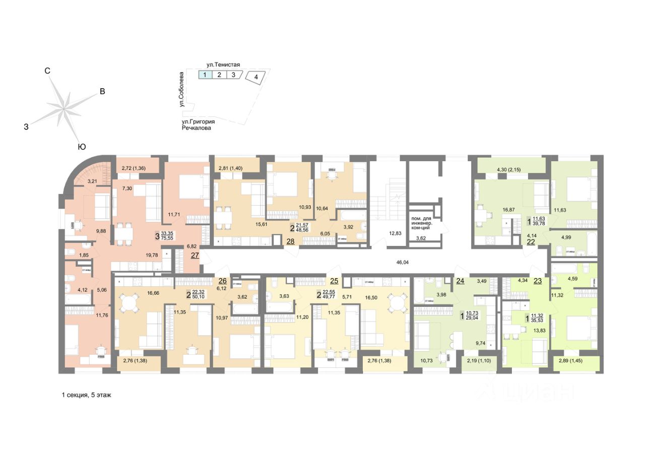 Семейный квартал "На Тенистой" будет состоять из 7 домов переменной этажности и паркинга. 1-я и 2-я очереди уже построены, сейчас активно возводится 3-я очередь и готовится к старту 4-ая очередь квартала. Квартал расположен на Широкой речке в самом молодом и современном районе - Академический, на пересечении улиц Тенистая-Краснолесья-Соболева. Вы сможете пользоваться преимуществами сразу нескольких районов: Широкая речка, Академический, Верх-Исетский и Юго-Западный! 30 минут до центра города на машине, 9 минут до Объездной дороги, если хочется выехать на природу. В шаговой доступности есть несколько школ, детских садов и спортивных секций. А еще один детский сад на 350 мест уже построен на территории самого квартала. Закрытый большой двор с ландшафтным дизайном Просторный двор, укрытый от городской суеты стенами домов, объединит все очереди жилого квартала "На Тенистой". К завершению строительства общая площадь двора составит впечатляющие 32 тыс. м², предоставляя достаточно места для отдыха и активности на любой вкус. Двор, разделят на рекреационные зоны по возрастам. Будут площадки для малышей и подростков с безопасным покрытием, зоны ворк-аута для предпочитающих здоровый образ жизни, прогулочные дорожки для бесед с друзьями или соседями. Живые зелёные изгороди, словно природная завеса, обеспечат чувство уединённости, защищая жителей первых этажей от посторонних взглядов. Уютный сад с плитняковыми тропинками, изящными перголами и удобными столиками для перекусов на свежем воздухе станет идеальным местом для тёплых семейных вечеров и дружеских встреч. Вдоль прогулочных дорожек установят невысокие уличные фонари, которые создадут атмосферу тепла и уюта. По всему периметру двора появится велодорожка, огибающая игровые зоны. Она станет любимым маршрутом для велосипедных прогулок. Игровые площадки покроют травмобезопасной резиновой крошкой нежных оттенков, подобранных специально для привлечения внимания детей. Разнообразие малых архитектурных форм порадует каждого ребёнка: карусели, качели-гнездышки, батуты, тарзанки и игровые комплексы обеспечат активный досуг и весёлое времяпровождение. Для начинающих футболистов разместится мини-футбольное поле с качественным искусственным газоном, расположенное таким образом, что шум и радость детских игр не потревожат ваш покой. Здесь ваши дети смогут организовывать настоящие турниры и приглашать друзей на матчи, наслаждаясь каждым моментом активного отдыха. Во дворе жилого комплекса "На Тенистой" каждый найдёт занятие по душе! Безопасность и комфорт Безопасность - важное преимущество эко-квартала. Вход на территорию осуществляется с помощью Face ID или через мобильное приложение. Для вашего удобства предусмотрено три выхода с подземного паркинга. На территории квартала будет круглосуточное видеонаблюдение, обеспечивающее безопасность вам и вашим маленьким исследователям в каждом уголке двора. Эстетика внутренних пространств Входные группы будут оформлены в соответствии с архитектурной концепцией всего квартала