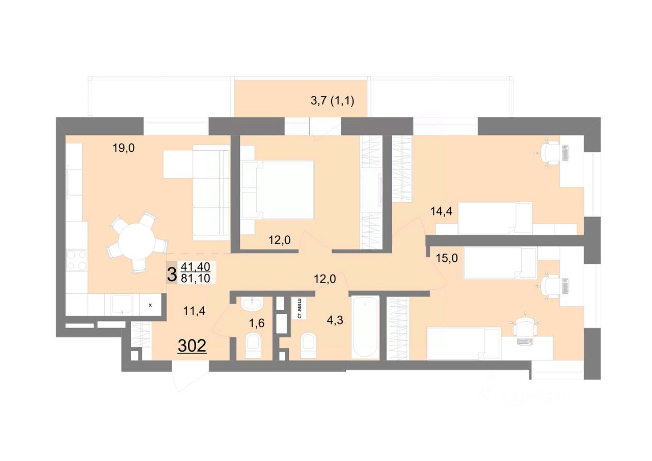 Продаётся 3-комнатная квартира в строящемся доме (Секция С1), срок сдачи: III-кв. 2026, общей площадью 78.8 кв.м., на 16 этаже. Многоэтажные жилые дома по ул. Металлургов от ГК "Астра". 1 очередь строительства